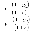 y: 0,972 dato da (1 + 0,05) / (1 + 0,08);
